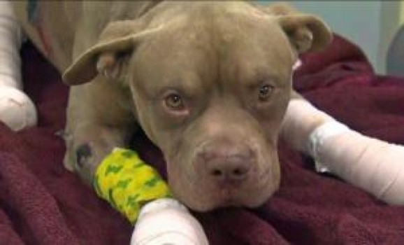一只斗牛犬被点着的烟花给烧伤,当时在圣费尔南多谷的一个汽车车床下找到它,它都差点死掉,经过多次对严重烧伤露骨头位置进行外科手术。 工作人员记得在加州西湖山村动物医院时,他们告知NBC4他们不能确定7月4日在温尼卡哈姆林街道与小巷之间发现这只烧伤后认为无法存活给抛弃的3岁大名叫“印地”的斗牛犬是否可以在此次如此严重烧伤下活下来,因为他们是在第二天发现并救援这只狗的。距今已经4个月了,动物医院丹尼尔。斯莱顿医生告知“印地”的伤口完全愈合,这只狗恢复包括了外科手术和植皮手术,经由来自格罗斯曼烧伤中心 理查德。格斯罗曼医生做救援手术。