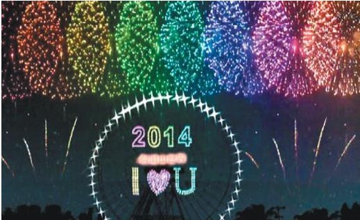 Fireworks show welcome 2014 new year coming!