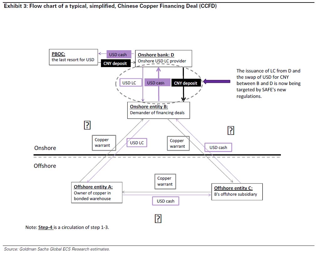 Another winning bet in the last few years has been what is referred to as the carry trade.   Here investors use commodities such as copper, steel, gold, and soybeans to borrow at low interest rates, and earn money off of the RMB appreciation and interest rate spread with-out ever really intending to use or sell the underlying commodity.  Chinese Copper Financing Deals (CCFD)